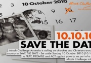 Micah Challenge Australia is calling on churches and Christians around the country to SAVE THE DATE - set aside Sunday 10 October 2010 (10.10.10) to pray, speak and act against poverty as part of a global Micah Challenge initiative.