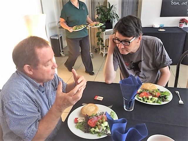 Diduno's Graham McDonald speaking with Eternity's John Sandiman over lunch.