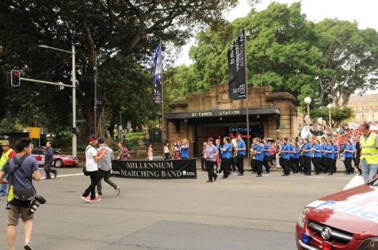 The Sydney CBD stood still as police arrived in cars, on bikes and horses to stop the traffic and escorted the parade that was approximately over 1 kilometre long.