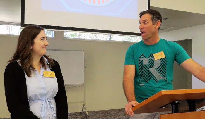 Miranda Menelaws being interviewed by Russell Modlin
