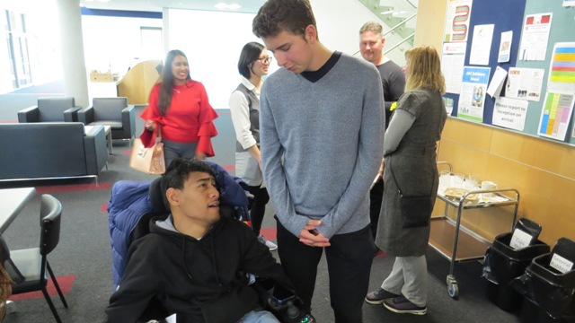 Photo  -   Kiwi young writer Manuele Teofilo in a wheelchair has a voice as does fellow young writer