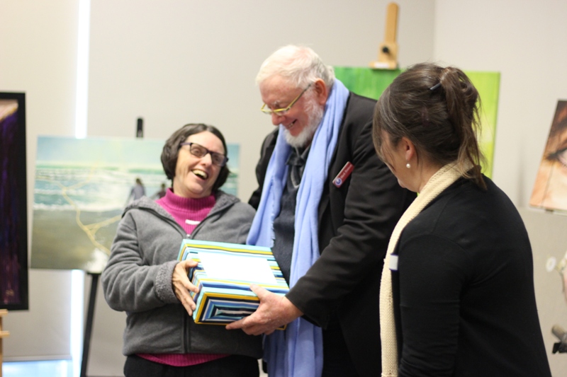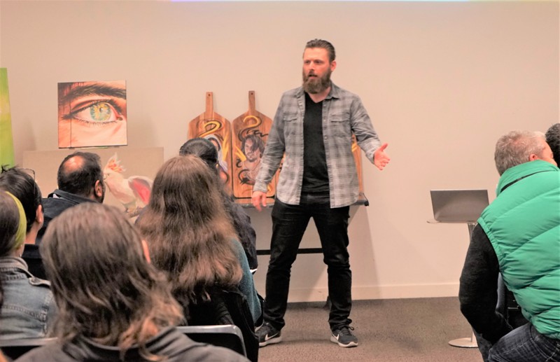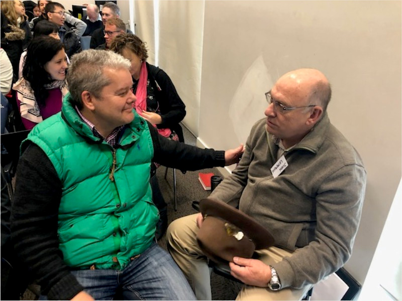 Photo  -  Wes Tronson speaking on mentoring at the 2019 young writers conference, a week later to bank executives